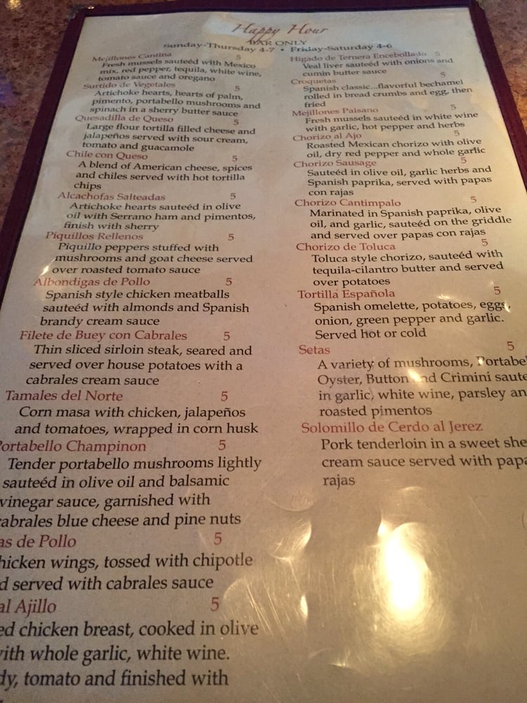 Sauteed shrimp, pimentos, raisins, pine nuts, manzanilla olives, white wine and spinach